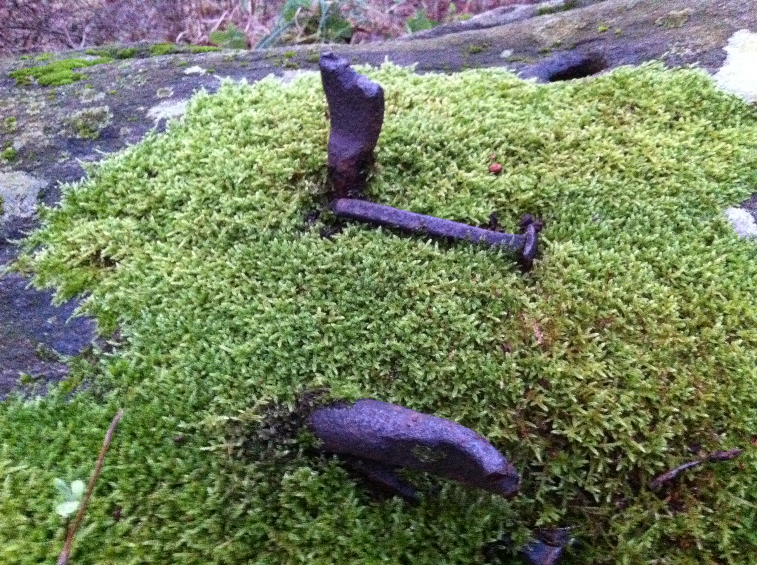Idag var jag upp och kikade bakom parkeringsplatsen där bostadshuset Borgen en gång låg. Jag har funderat på var stolparna till torvbanan  (Läs mer om torvbanan här) som gick upp till Sörmossen har stått. Dessa borde ju ha stått precis bakom Borgenhuset på berget och visst var det så. Jag hittade lämningar efter minst 3 stolpar.