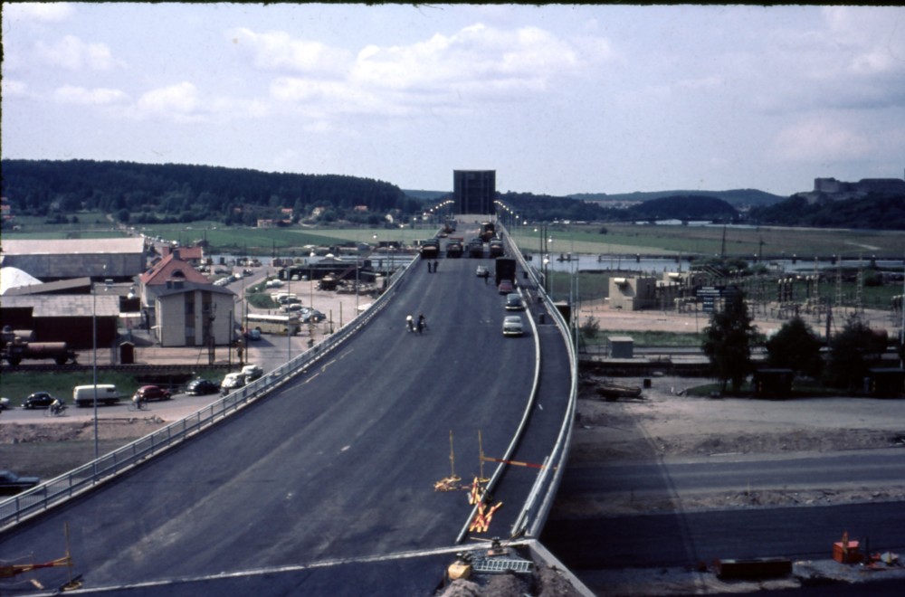 Brevet skickades till Nödinge kommun från ett enat Surte 1959 men man skulle få vänta till 1966 innan man kunde köra över den 700 meter långa bron vid Jordfallet.