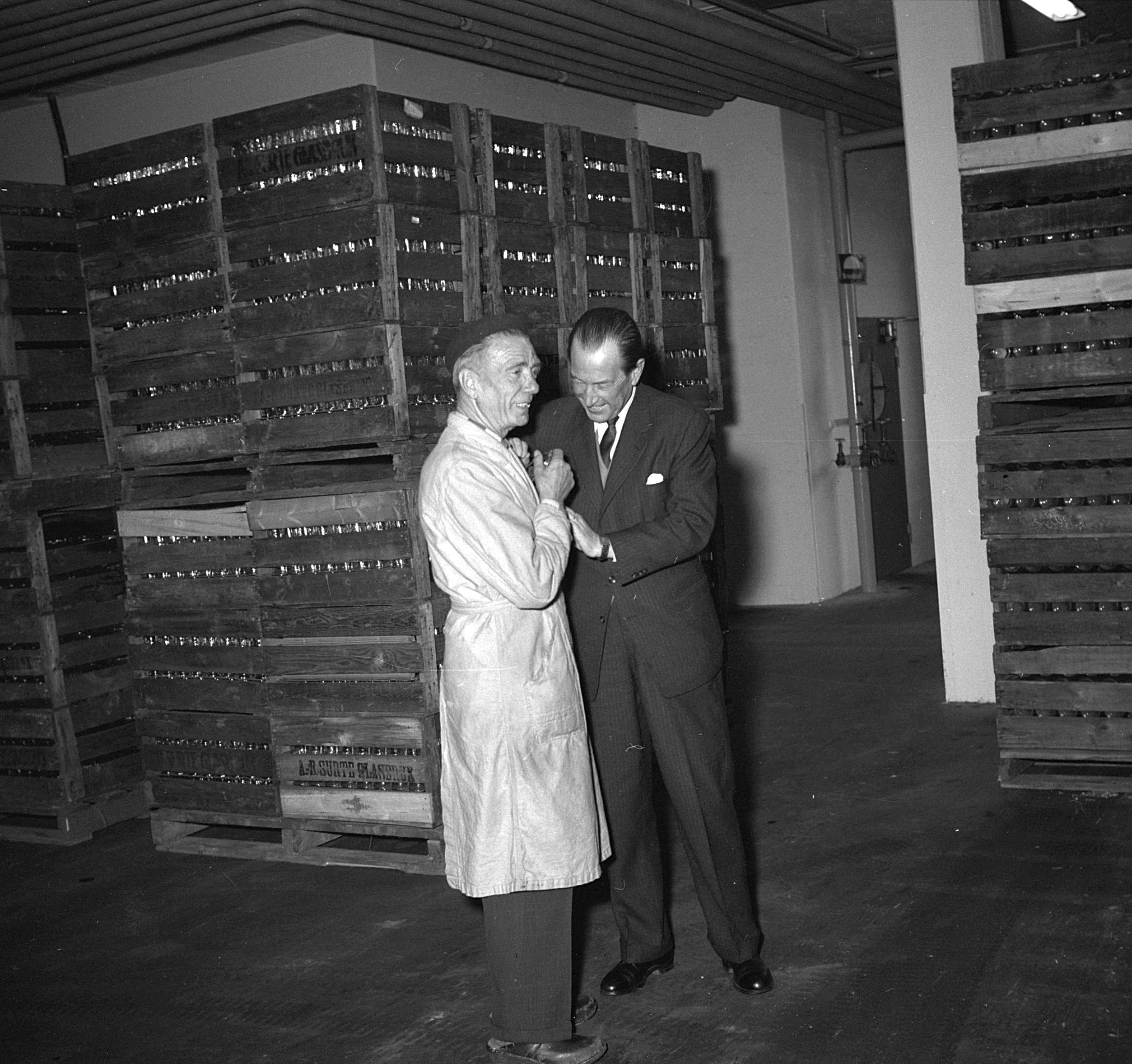 Vi har samlats här i dag för att hylla Dig på Din sista dag som verkställande direktör på Surte. Under många år har Du ivrat för och aktivt medverkat till att genomföra en strukturrationalisering inom den av Dig älskade glasindustrin. Du har haft en stark känsla för att det var den riktiga vägen ut för att konsolidera denna industri och för att göra den rustad att möta de nya problem som en intensivare och kraftigare konkurrens med utlandet kommer att innebära. Såsom bruket i dag ser ut är det ju en fantastisk utveckling i framför allt tekniskt hänseende som genomförts under Din tid. Det vikingalynne som Du är besjälad av gör måhända att jag skulle vilja ge Dig, om vi hade kunnat förflytta oss tillbaka till den tiden, epitetet Per Nydanare, för en nydanare utav stora mått har Du varit, till gagn för det företag vars högste chef Du varit, till gagn för alla Dina många medarbetare och kolleger, till gagn för alla dem som format detta brukssamhälle, där Du varit en dominerande gestalt i så många år.