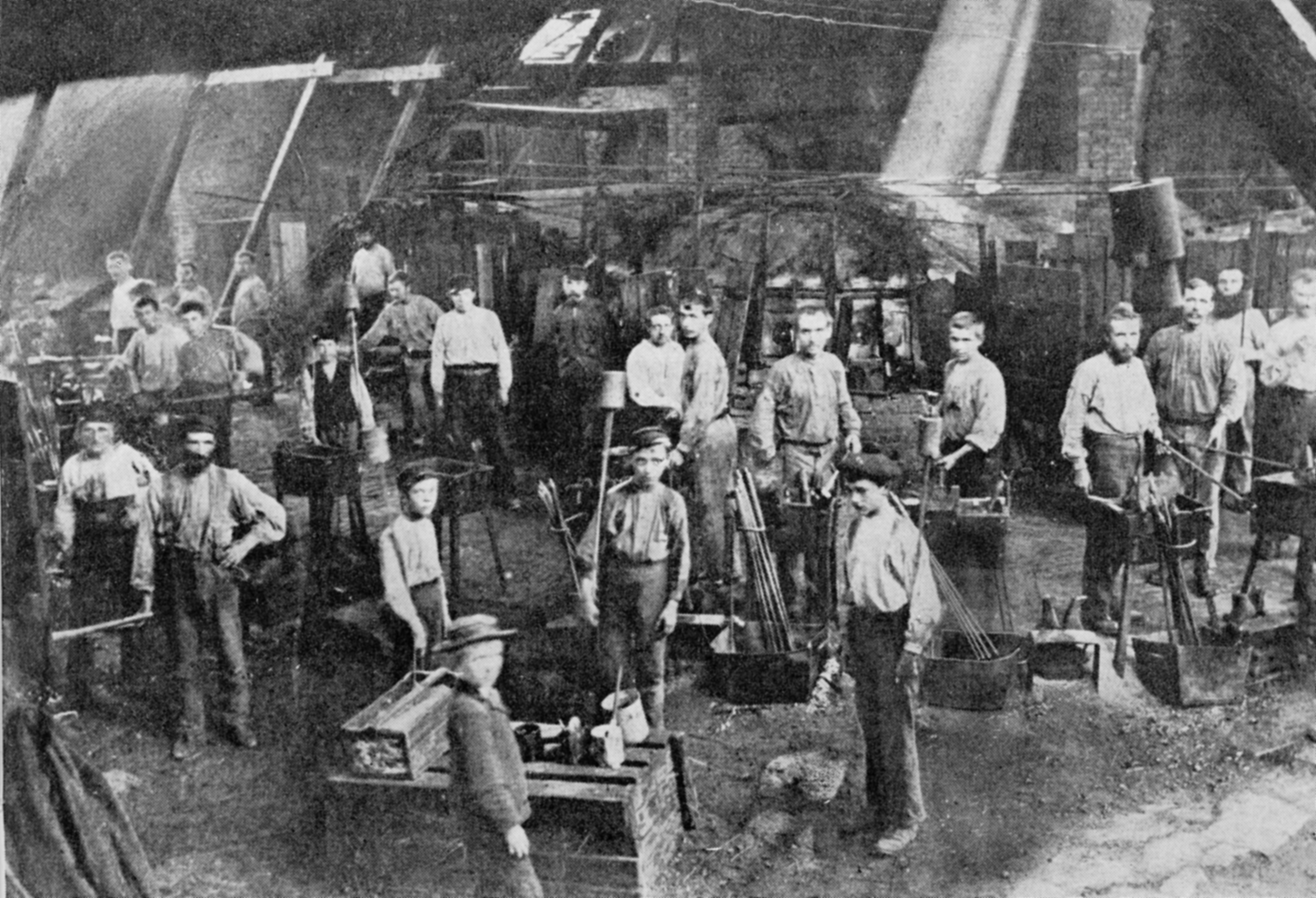 En dag stod där i alla fall en maskin i en av storhyttorna. Ett förskräckligt åbäke, som såg ut som ett mellanting av ett lokomotiv och ett tröskverk. Brukets verkmästare hade antagligen fått en beskrivning på buteljmaskinen av någon hemvändande svensk-amerikan och så hade han gått åstad och gjort en egen konstruktion. Den dagen maskinen skulle provköras rådde det stor spänning i hyttorna. Skulle det verkligen lyckas för ett sådant där monstrum att framställa en butelj? Skulle verkligen detta virrvarr av plåtrör och cylindrar kunna klara ett jobb, som det tog bortåt en tio år för en människa att lära ? Spänningen var olidlig.